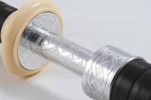 Imitation ivory projecting mounts with engraved alloy plates recessed into the top surface, engraved alloy ferrules, slides and ringcaps. Plus, an imitation ivory and engraved alloy mouthpiece with McCallum plastic pipe chanter with engraved alloy sole.