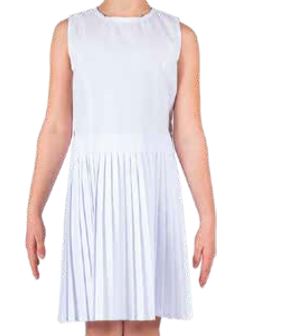 P&DANZ style white jig dress made by PW Dancewear. 100% polyester. Drop waist with 1.5″ growth at waist.