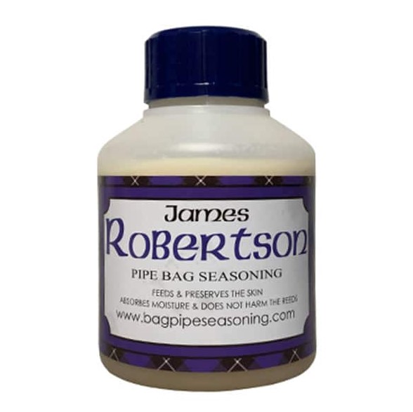 James Robertson Pipe Bag Seasoning is specially formulated for use in all skin and hide pipe bags. Manufactured in Scotland using only the finest ingredients, this seasoning is produced to the highest quality, guaranteeing your bag will not leak and the moisture content within will be kept at optimum.