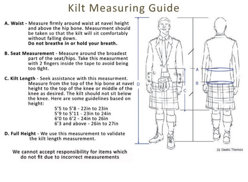 All kilts are made in Scotland by RGHardie trained kilt makers. They are fully canvas lined with 3 buckles to ensure an excellent fit.