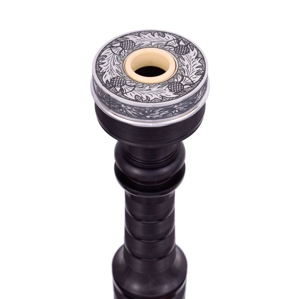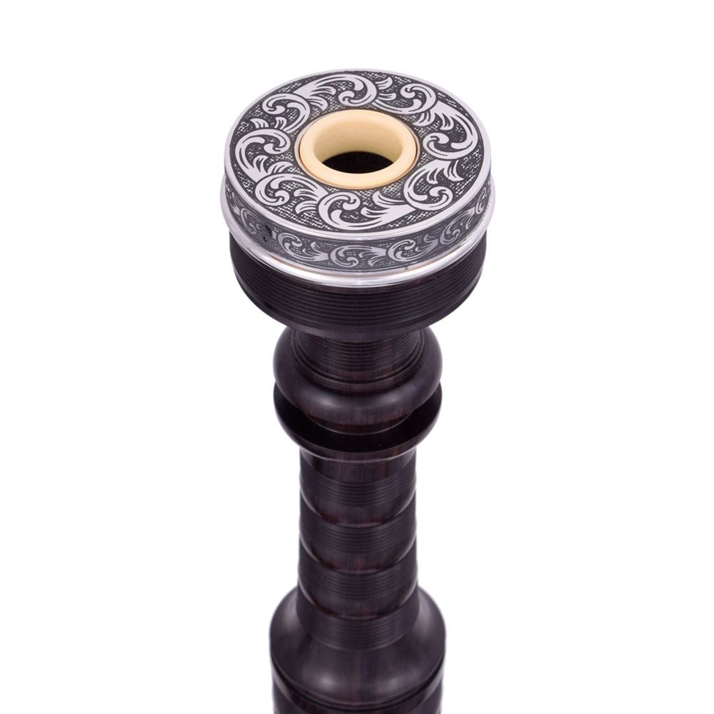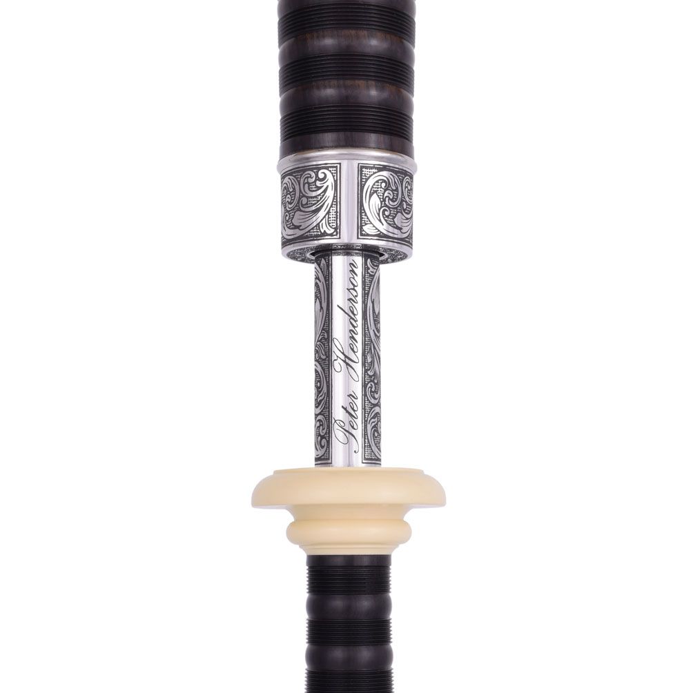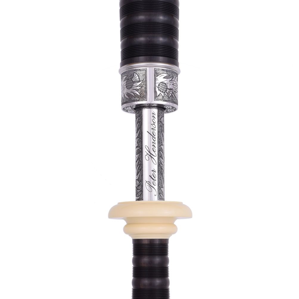 Our most popular Henderson set which recreates the look of a half silver set at a fraction of the cost. The depth of the engraving on the nickel is what sets these pipes apart.
