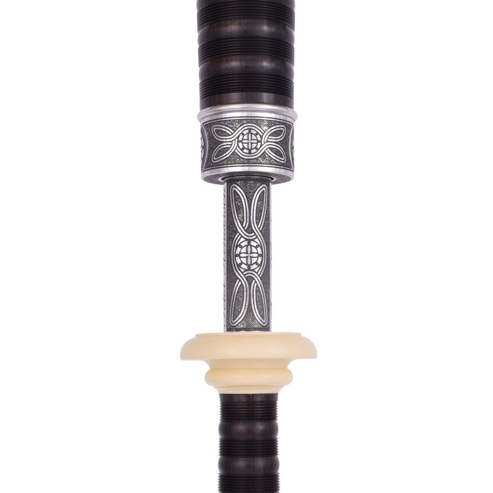 - Imitation Ivory projecting mounts, hemp retainers and ring cap bushes