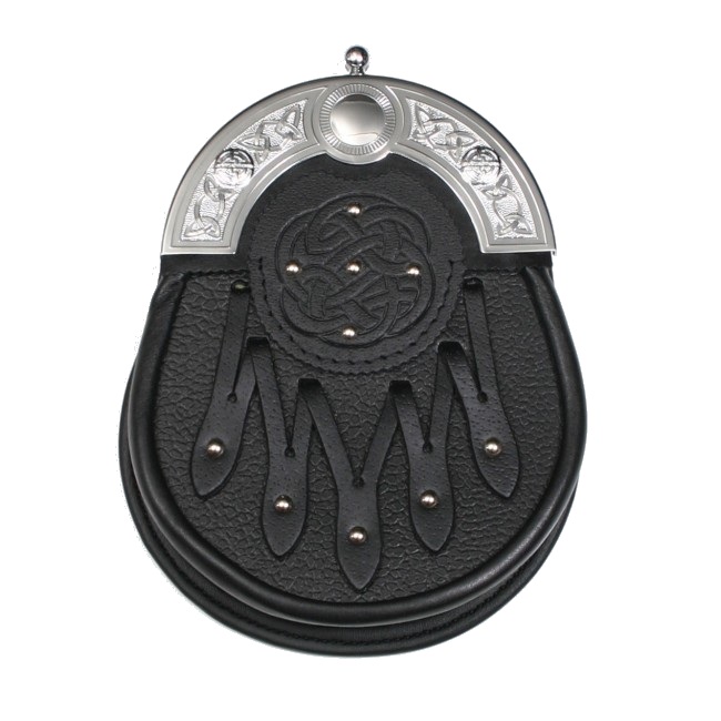 Made on our premises in Glasgow, Scotland using the finest materials. This sporran features an embossed Celtic design with metal studs.